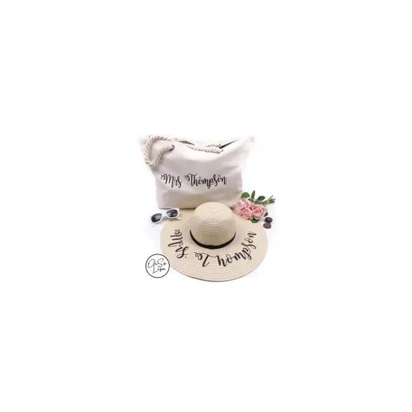 Personalised Beach Bag with Sun Hat