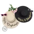 Welcome to Oh Liza Radley and thank you for visiting my shop. This hat is a perfect mix of glamour, fun, celebration, and anyone wanting a little extra on their holiday.  It is a unique keepsake every bride will wear and treasure or that perfect birthday gift.  Add a name, destination, message or nickname. Perfect for honeymoons, bachelorette parties personalize with the girls’ names or wedding titles!  Birthday Get Away, Girls Holiday. Each hat is available in Natural or Black colour,  personalised with text of your choice on top of the brim in a pretty script font with the colour of your choice.  Please note as this item is made and personalised especially for you we will not be able accept cancellations on these items once they are created. We cannot accept returns or exchanges on these items unless the items are faulty. ABOUT YOUR HAT Domed crown.